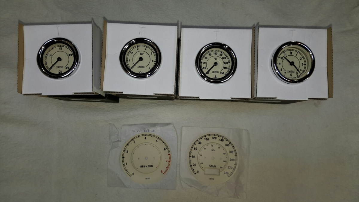 The new Smiths instruments with magnolia faces and the new faces for the original speedo and tacho