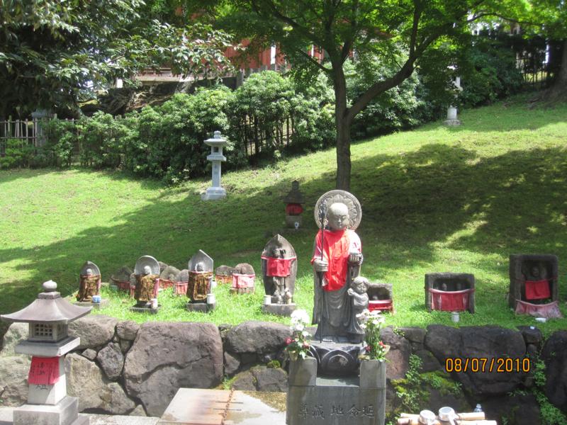 The red bibs on the statues are in memory of babies or children who died very young