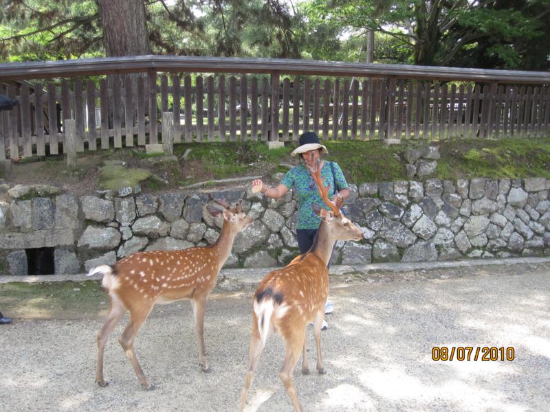 Francesca feeding one of the park deer